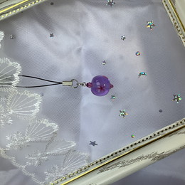 紫にピンクの花がついたトンボ玉です。
