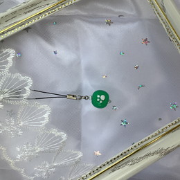 緑に犬の手形が付いたトンボ玉です。