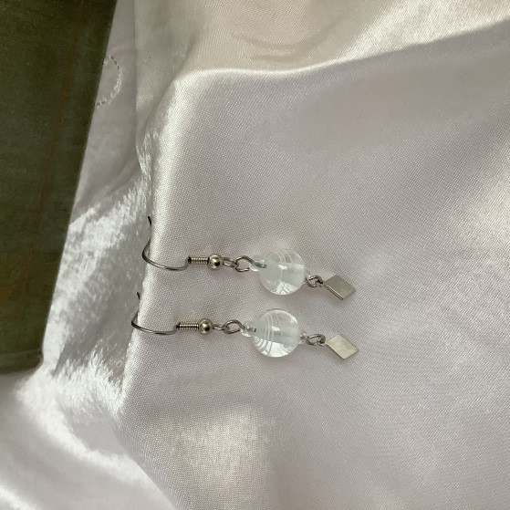白と透明模様のトンボ玉にダイヤの飾りが付いています。